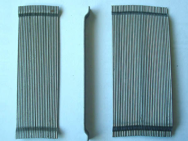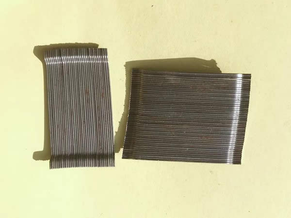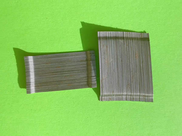 膠粘成排鋼纖維又稱聯(lián)排鋼纖維是由高強(qiáng)鋼絲使用水溶性膠水粘接而成。